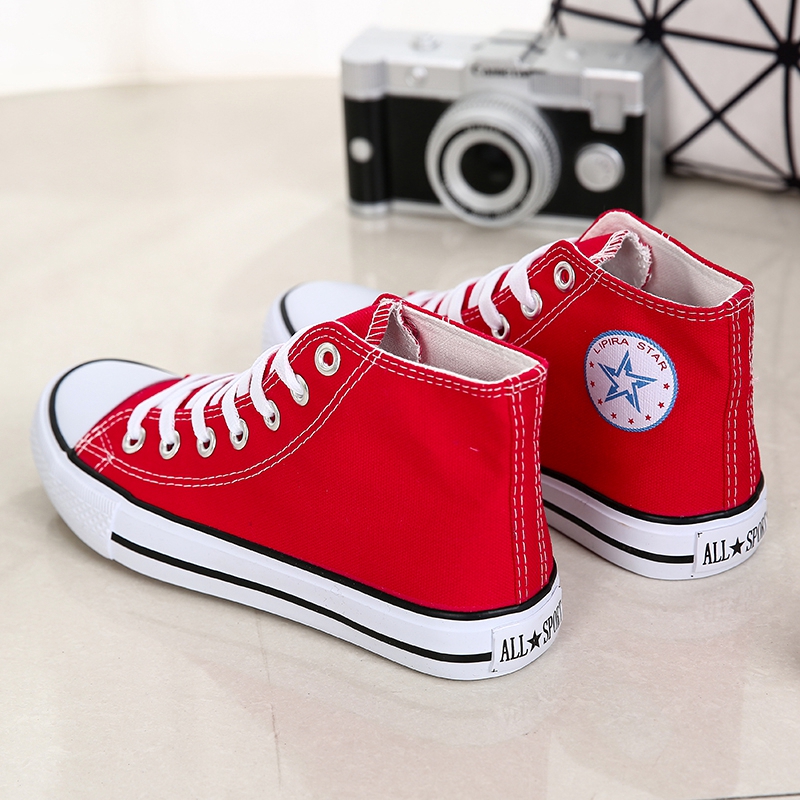 “These classic red high-top canvas sneakers are the ultimate blend of timeless style and everyday comfort. Featuring a durable canvas upper, breathable design, and a sturdy rubber sole, they are perfect for casual outings or completing your streetwear look. With their unisex appeal and versatile design, these sneakers are a wardrobe essential, offering both style and functionality for any season.”